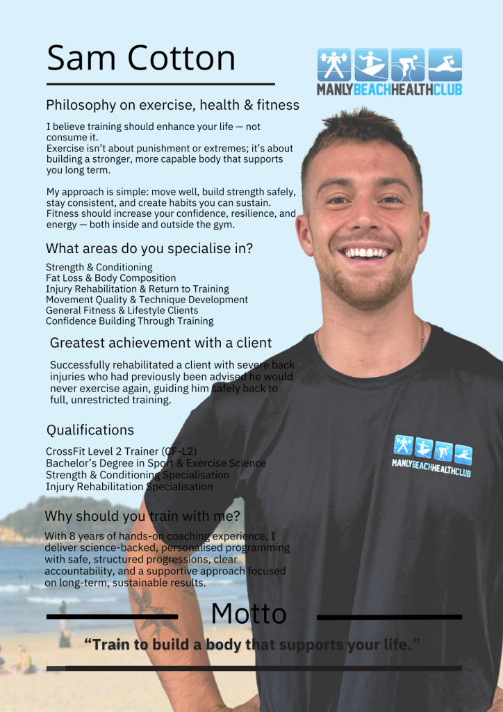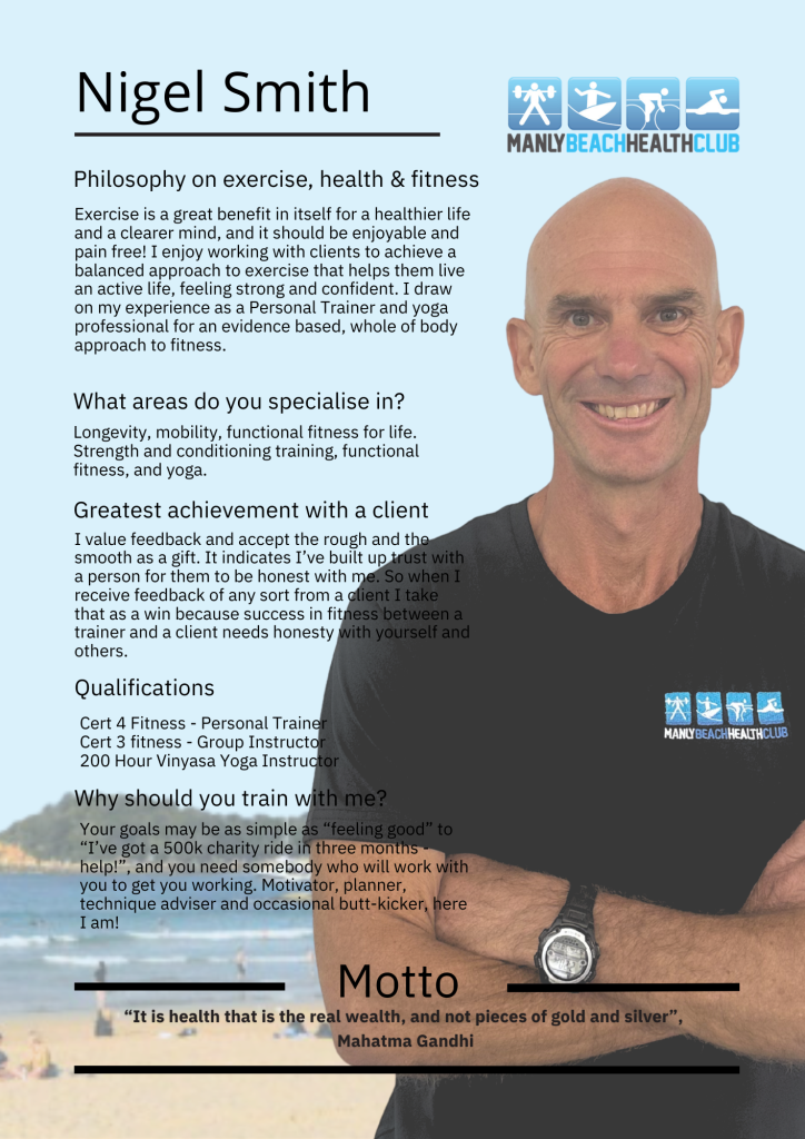 Manly Beach Health Club offers a range of personal trainers and group exercise specialists.